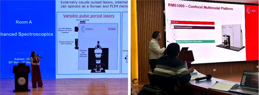 在会议展览区,天美爱丁堡仪器公司的展台吸引了众多与会学者的目光。我们展出的爱丁堡仪器显微拉曼光谱仪RM5,以其卓越的灵敏度、优异的稳定性与高度的灵活性,成为现场探讨的焦点之一,完美契合了振动光谱与增强光谱研究的核心需求。
